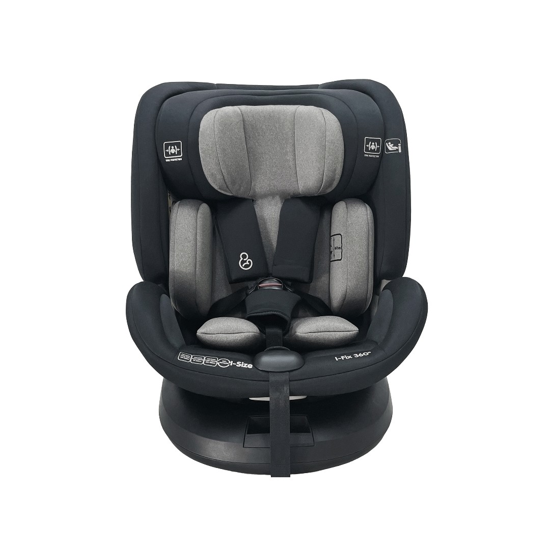 Cadeira para carro com Certificação i-Size, acompanhando a criança de 40 a 150 cm de altura. Possui segurança extra contra impactos laterais de alta intensidade, garantindo proteção em todas as fases.