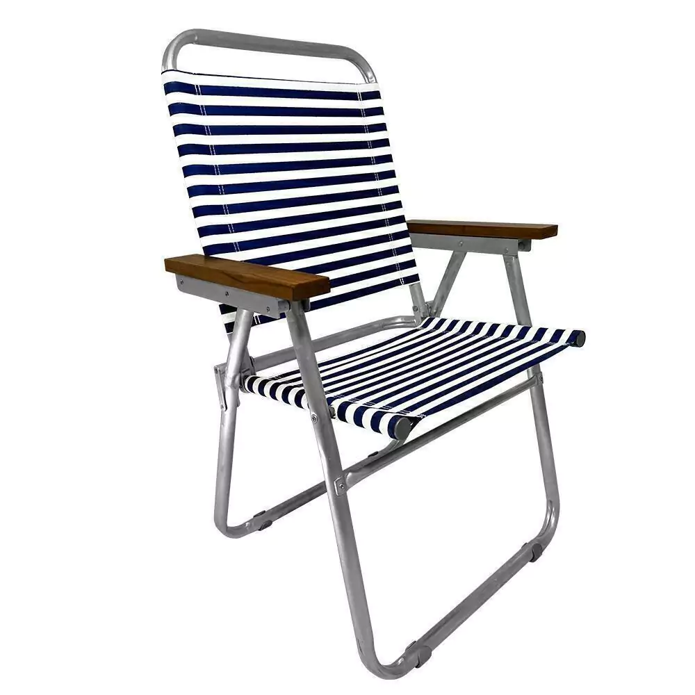 A Cadeira CARAVELA ZAKA é ideal para uso em casa, na varanda, jardim, piscina, sacada, na sala de estar ou até mesmo no litoral, proporcionando ótimos momentos de lazer. Tem como principais diferenciais a largura e a altura e é indicada para pessoas com até 120 kg, mais altas. Fabricada em alumínio de alta resistência com rebites em inox e alumínio. Tecido impermeável poliéster e algodão, assento triplo, cor listrada marinho e branca que combina perfeitamente, e remete a linha Náutica. Seus braços de Madeira Teca deixam a cadeira além de muito bonita, com ar elegante e sofisticado. Atende público exigente, com alto padrão de qualidade. Possui proteção que não risca o chão.